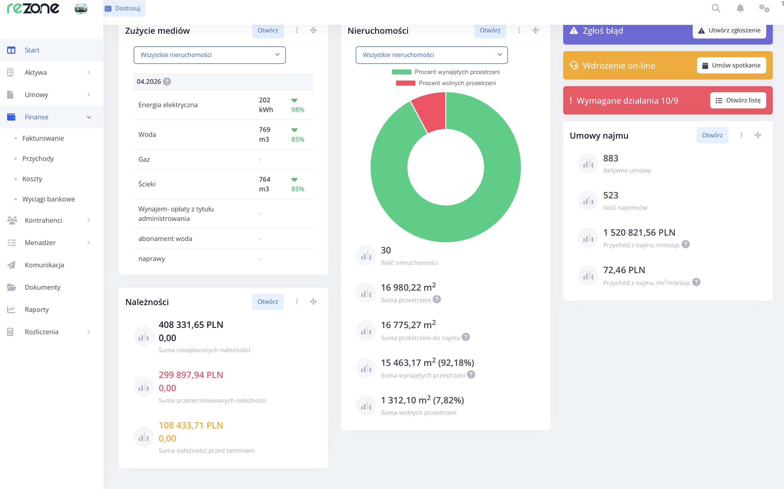 Rozwiązanie: Automatyzacja przepływów finansowych to dzisiaj standard. System Rezone został zaprojektowany tak, aby umożliwiać sprawną windykację zaległości za czynsz i inne opłaty. Platforma automatycznie generuje monity, przypomnienia o płatnościach oraz nalicza odsetki, zdejmując ten uciążliwy obowiązek z barków księgowości i działów zarządzania.